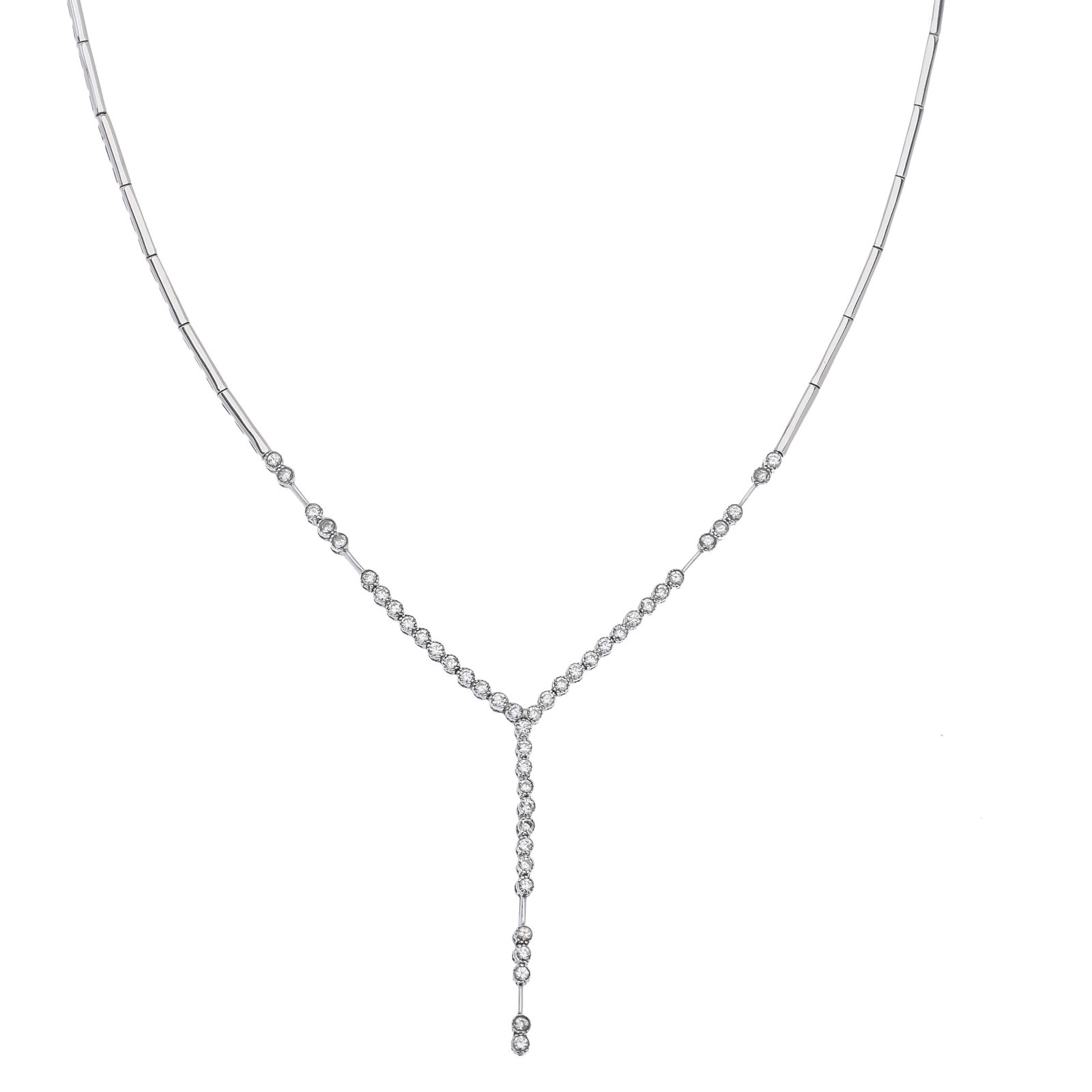 Κολιέ γυναικείο λευκόχρυσο 14 καρατίων με λευκά ζιργκόν.