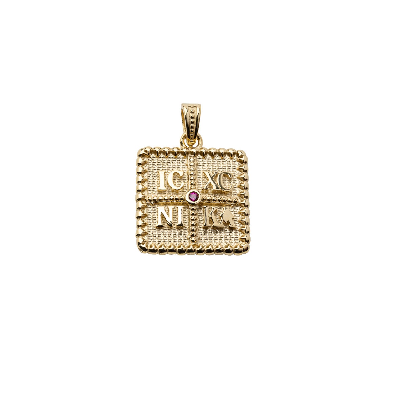 Κωνσταντινάτο γυναικείο από χρυσό 14 καρατίων και κόκκινο ζιργκόν.