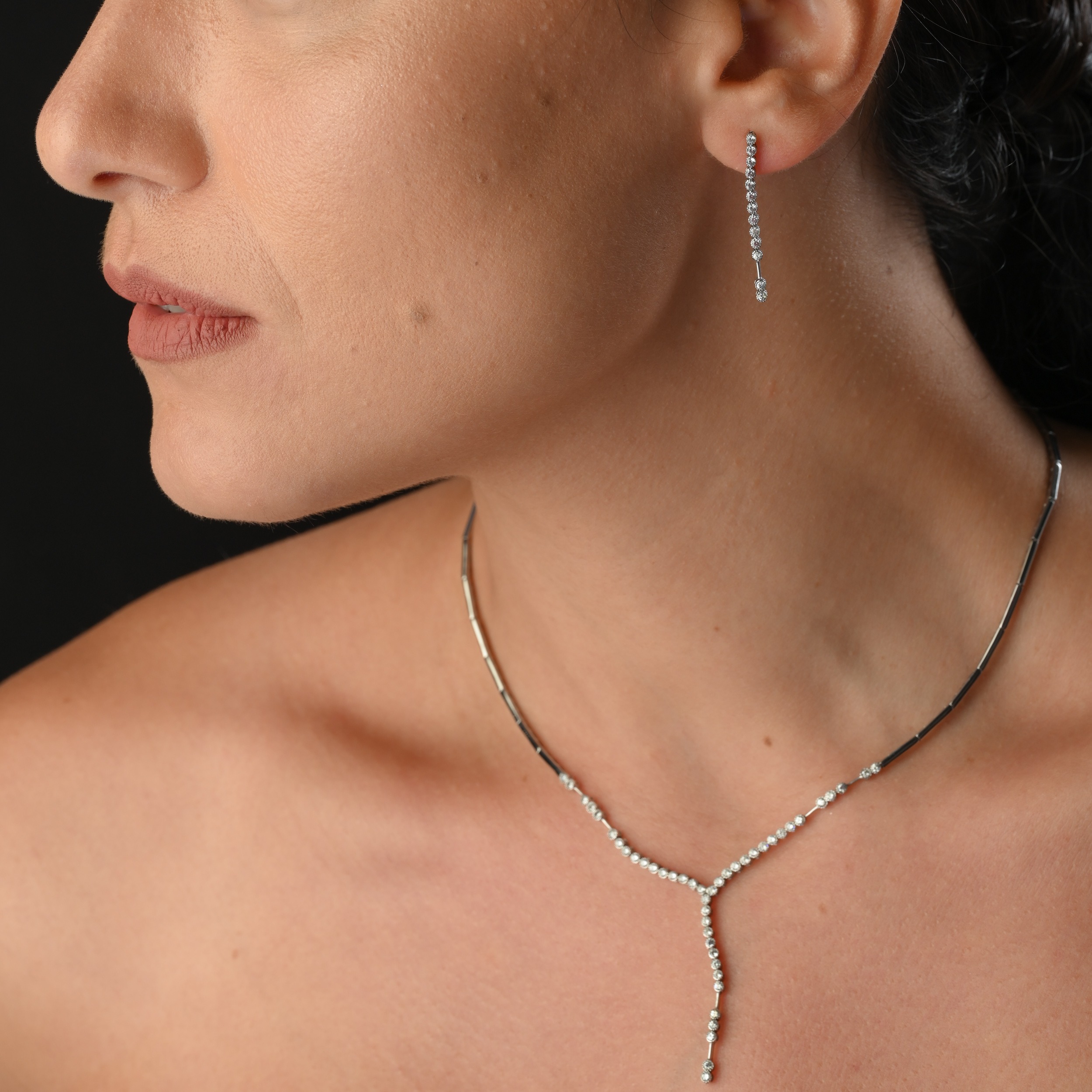Σκουλαρίκια γυναικεία λευκόσχρυσα από χρυσό 14 καρατίων και λευκά ζιργκόν.