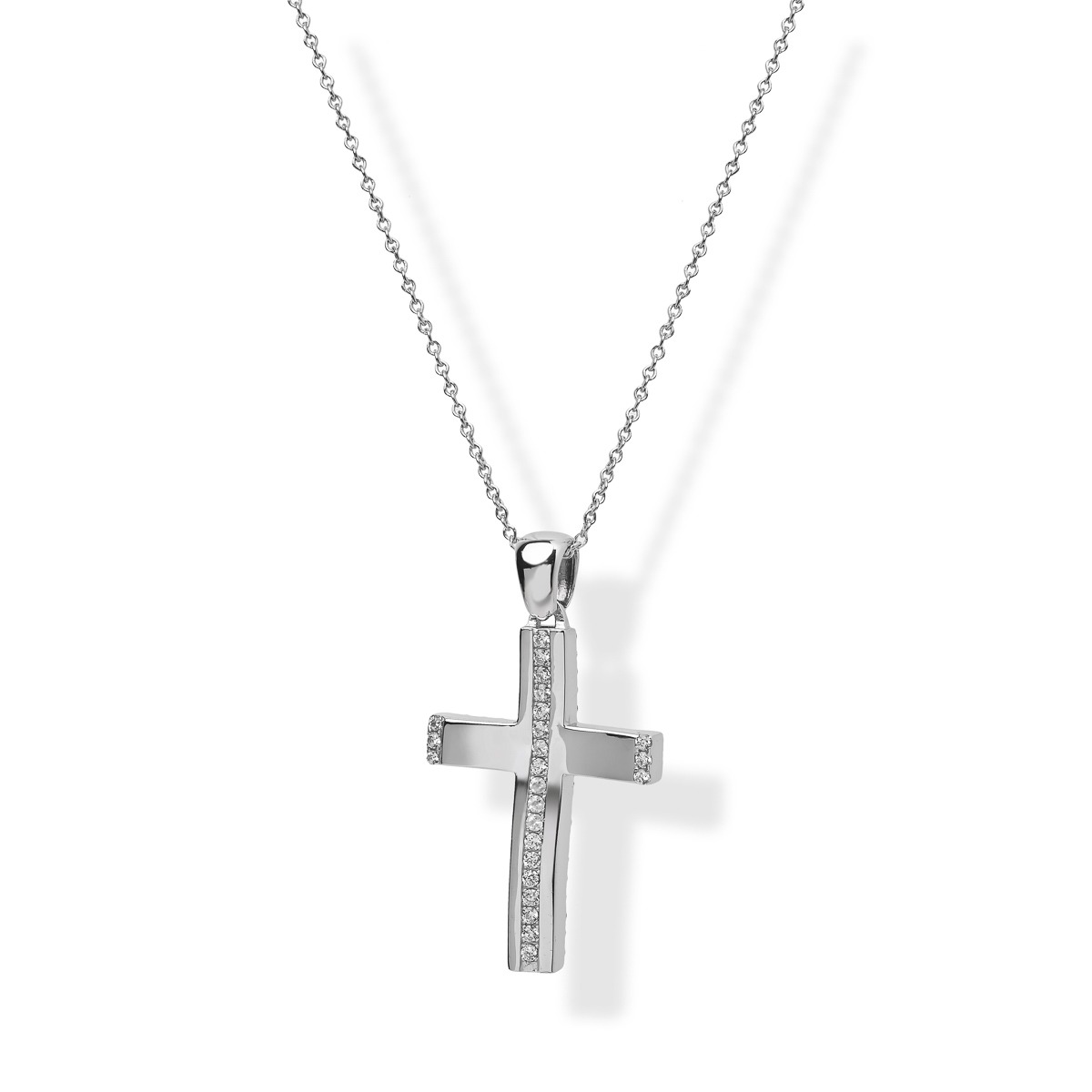 Σταυρός γυναικείος από λευκό χρυσό 14 καρατίων.