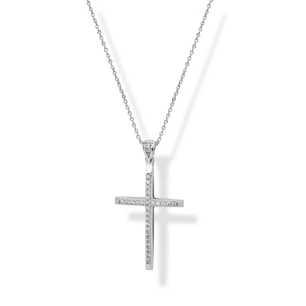 Σταυρός γυναικείος από λευκό χρυσό 14 καρατίων.
