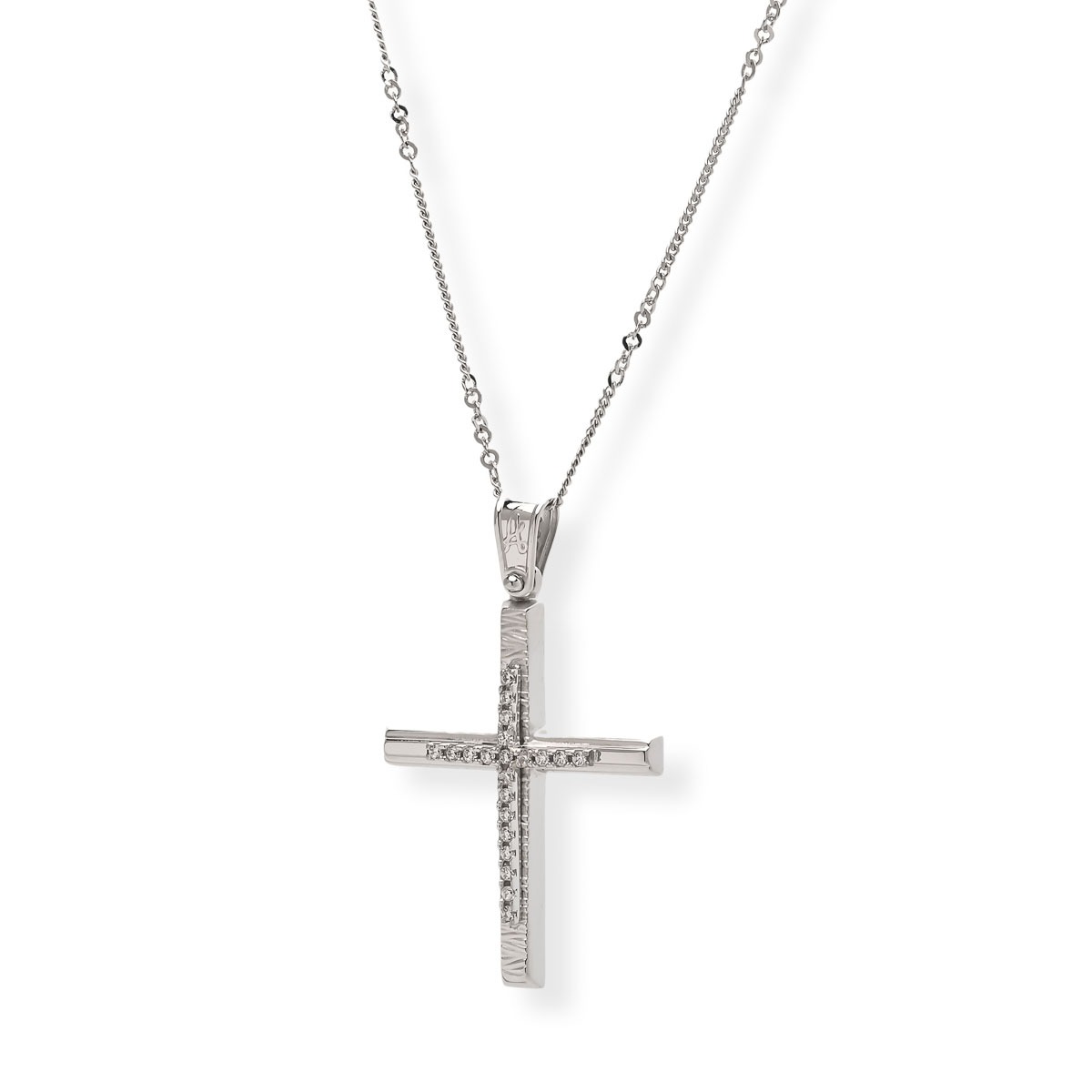 Σταυρός γυναικείος από λευκό χρυσό 14 καρατίων.