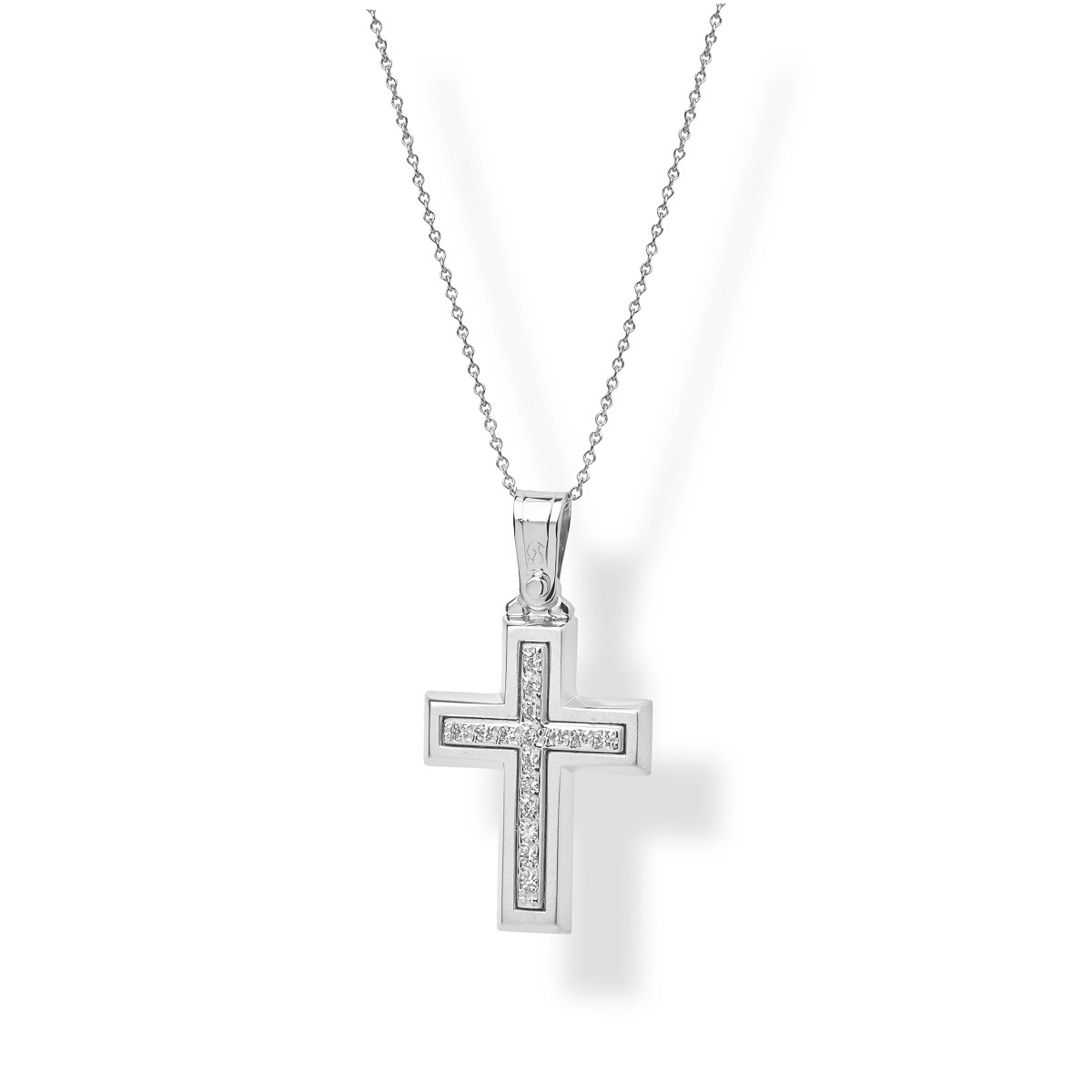 Σταυρός γυναικείος από λευκό χρυσό 14 καρατίων.