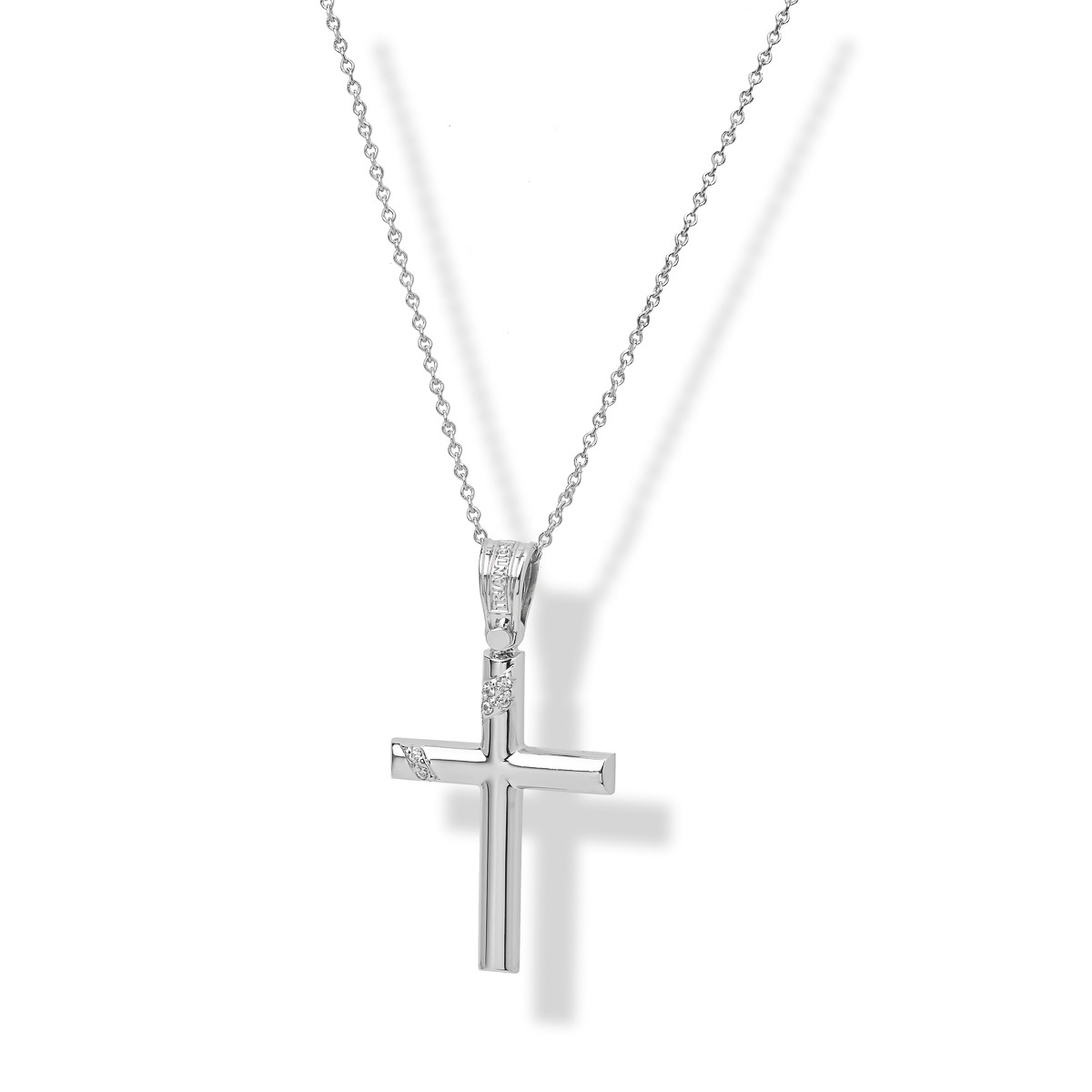 Σταυρός γυναικείος από λευκό χρυσό 14 καρατίων.