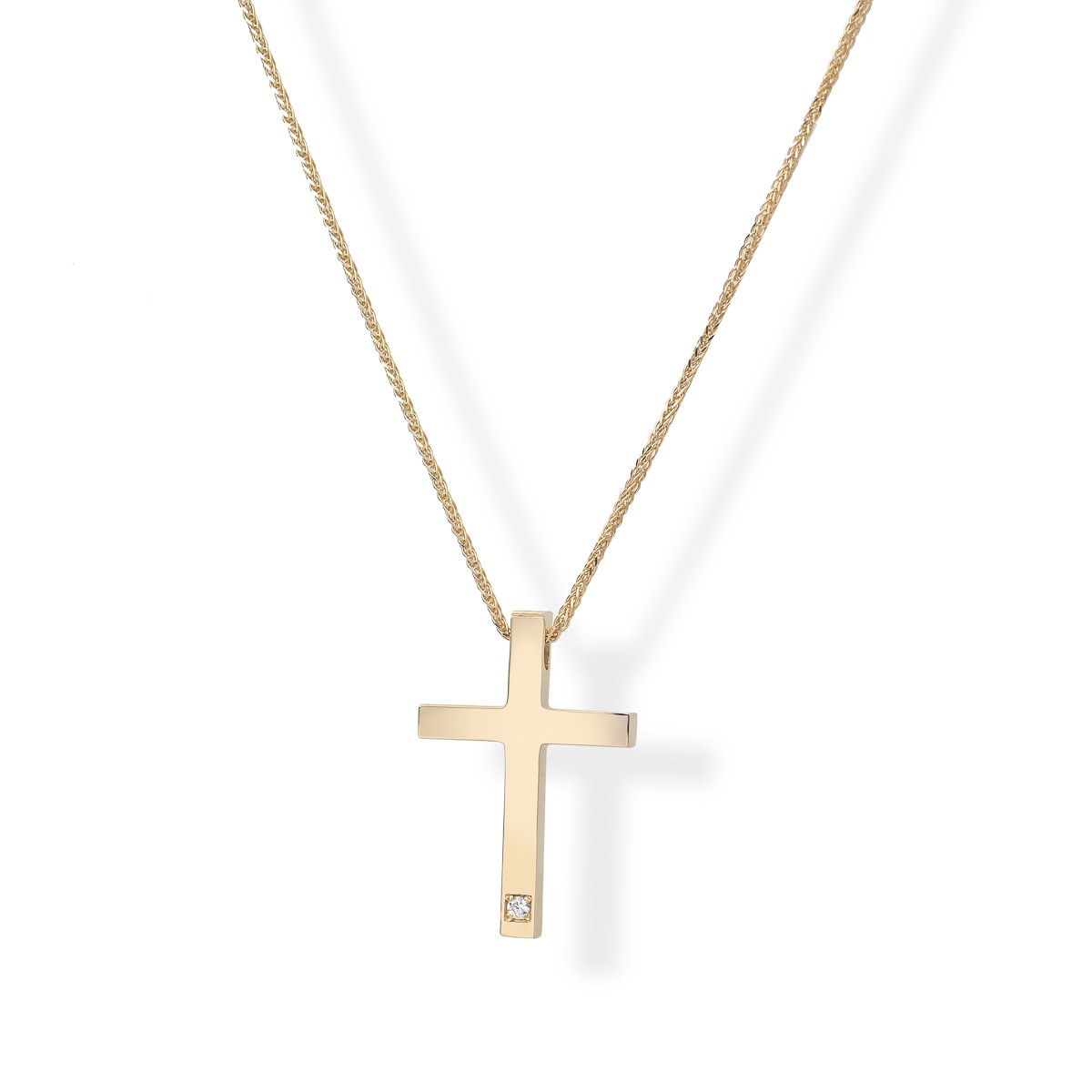 Σταυρός γυναικείος γυαλιστερός από χρυσό 14 καρατίων και πέτρες zircon.