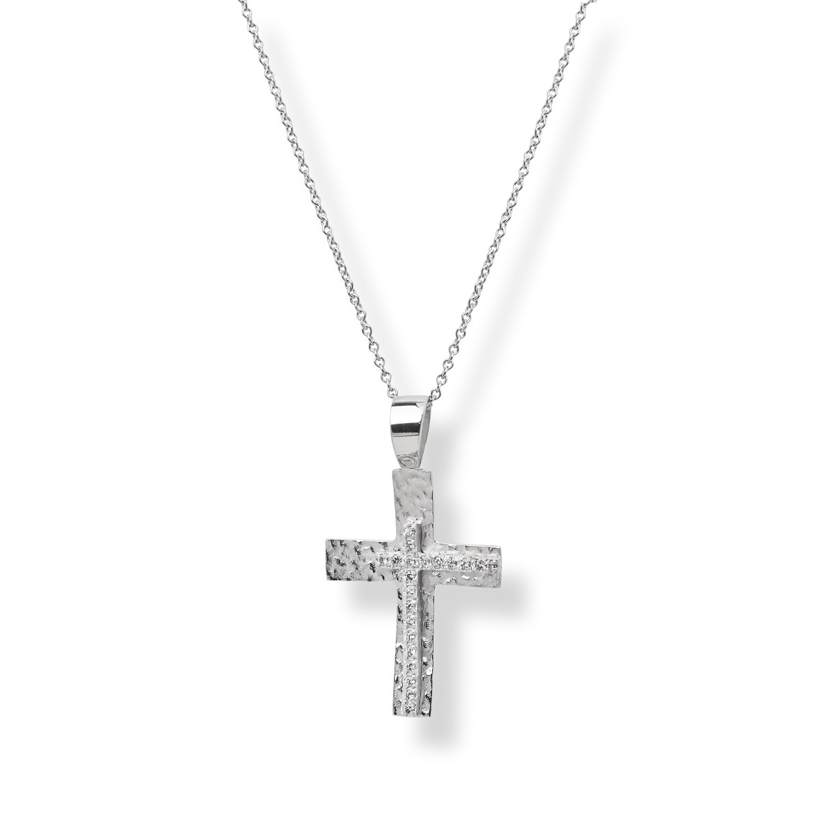 Σταυρός γυναικείος από λευκό χρυσό 14 καρατίων.