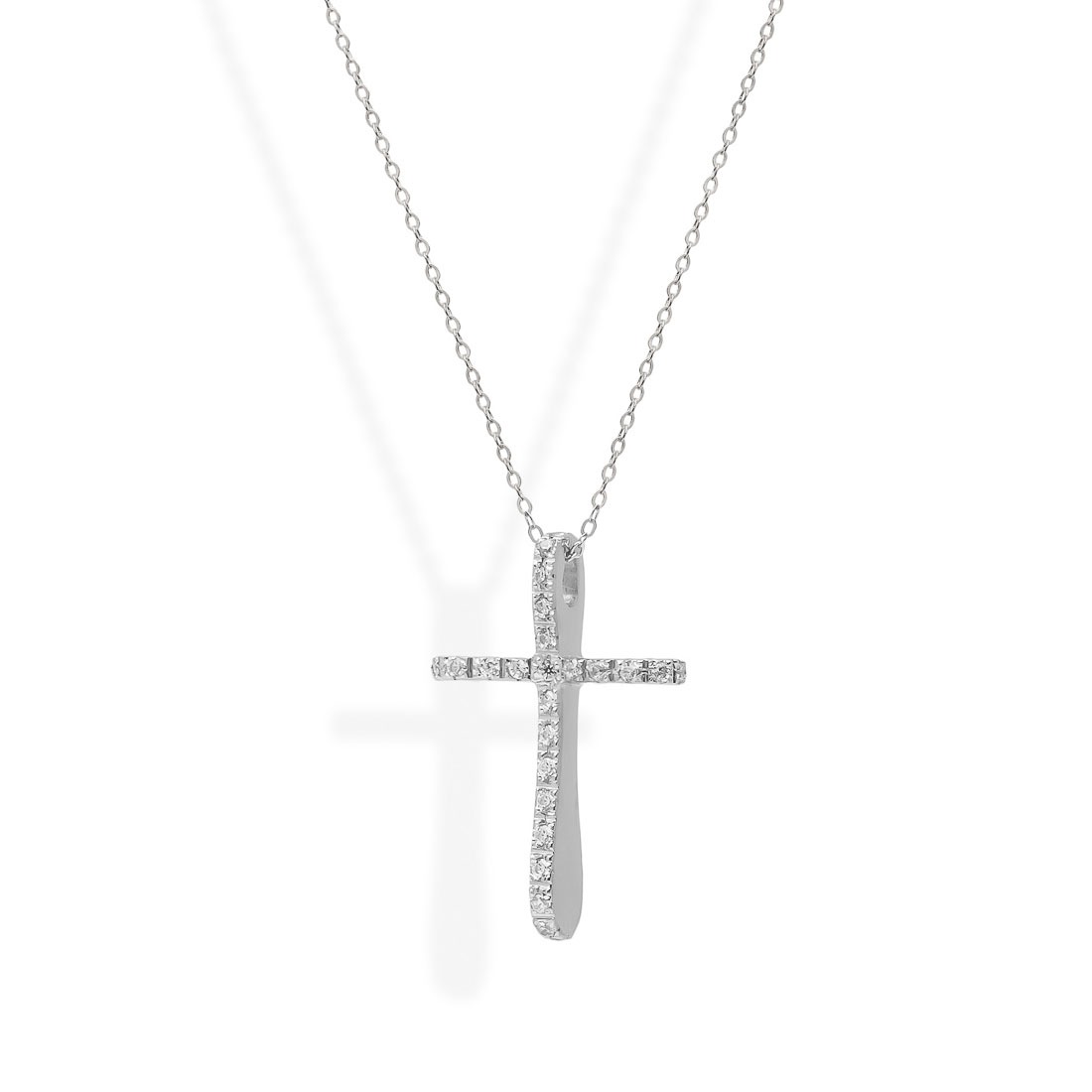 Σταυρός γυναικείος από λευκό χρυσό 14 καρατίων.