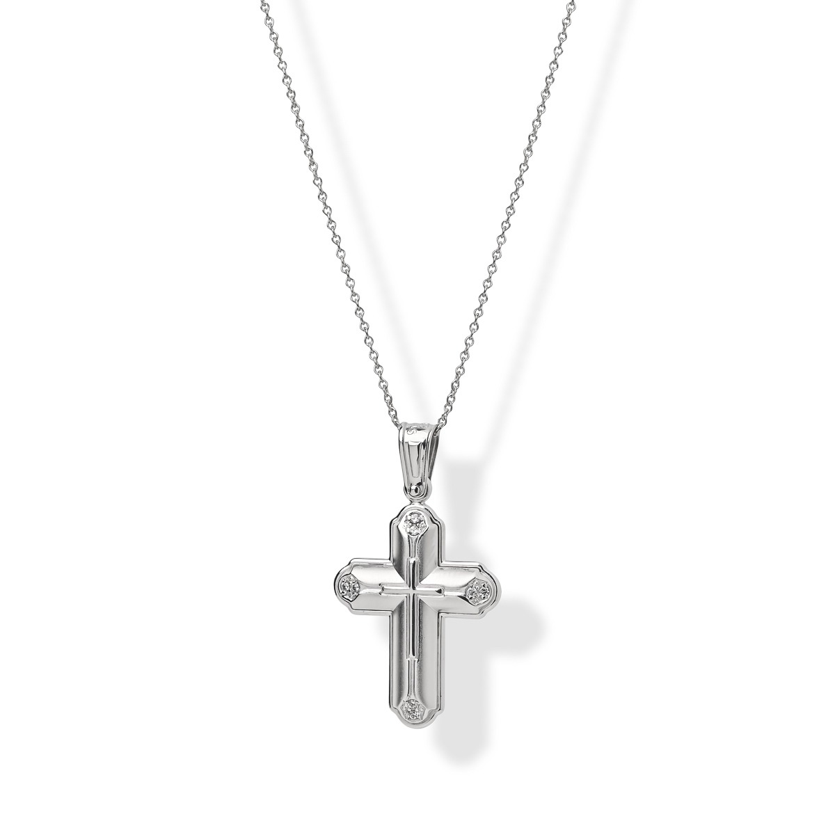 Σταυρός γυναικείος από λευκό χρυσό 14 καρατίων.