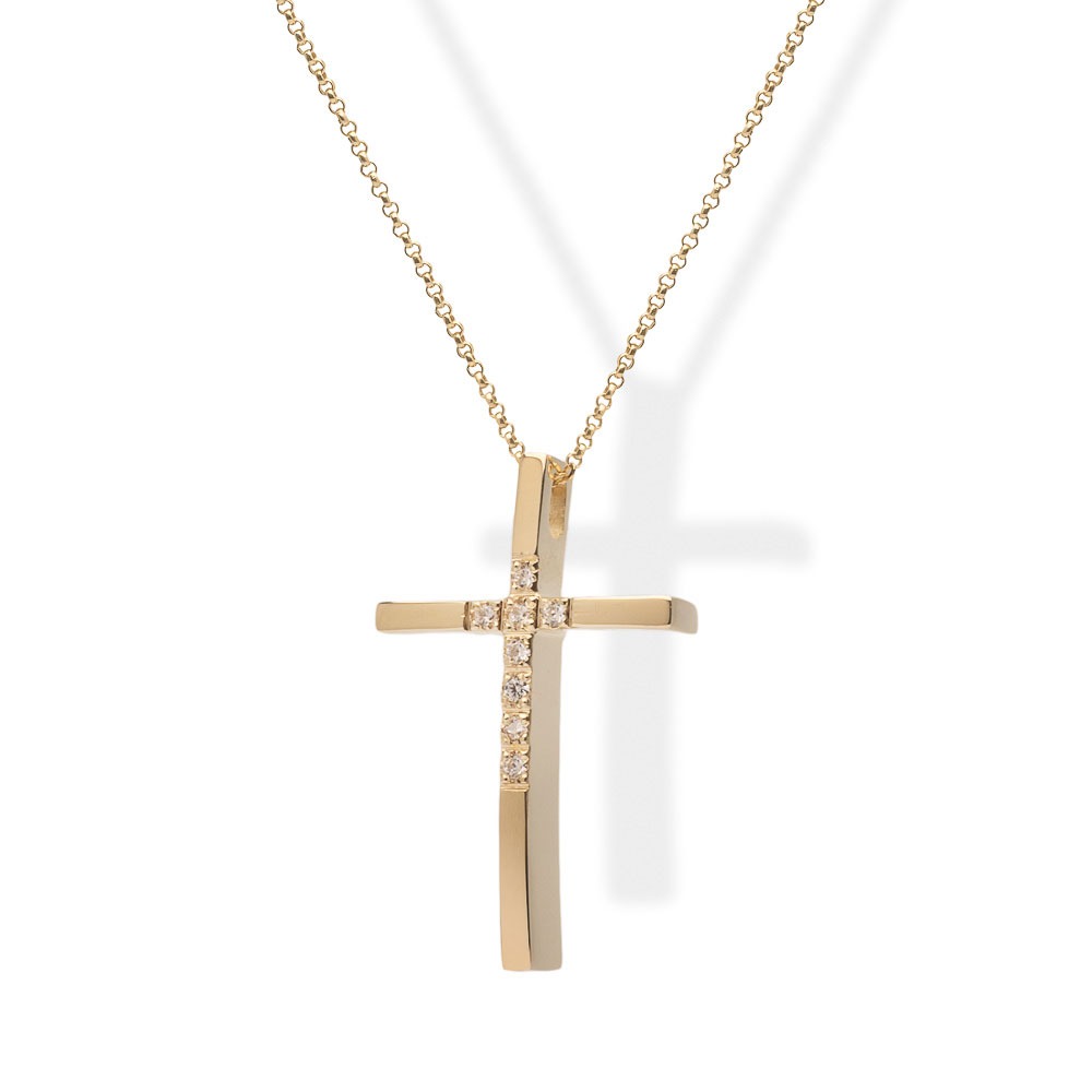 Σταυρός γυναικείος από χρυσό 14 καρατίων και πέτρες zircon.