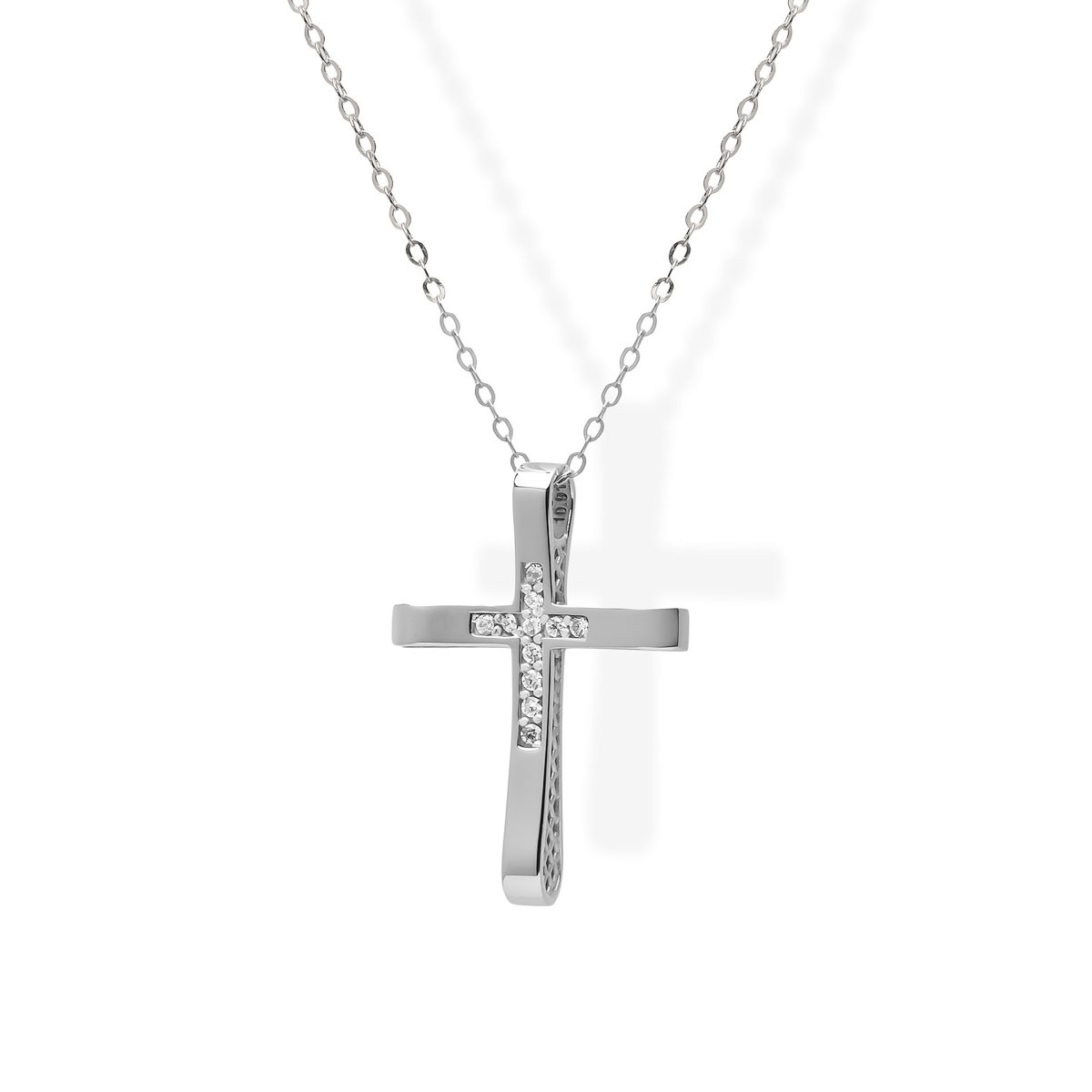 Σταυρός γυναικείος από λευκό χρυσό 14 καρατίων.