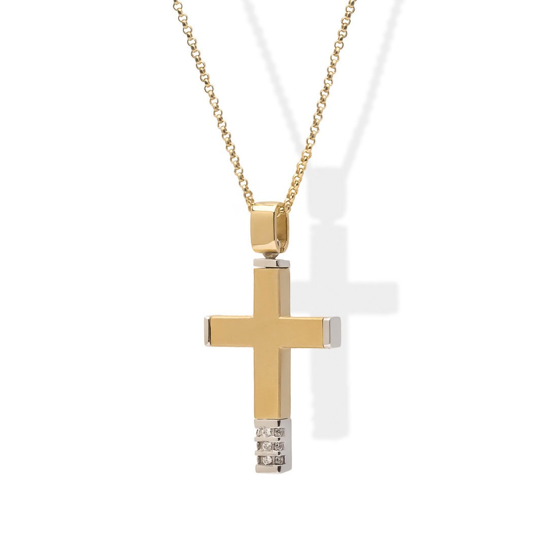 Σταυρός γυναικείος από χρυσό 14 καρατίων και πέτρες zircon.