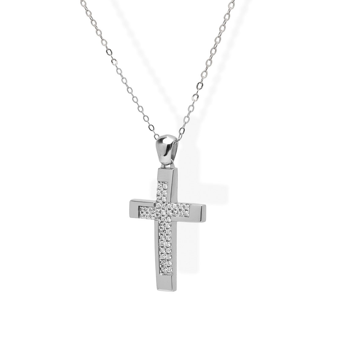 Σταυρός γυναικείος από λευκό χρυσό 14 καρατίων.