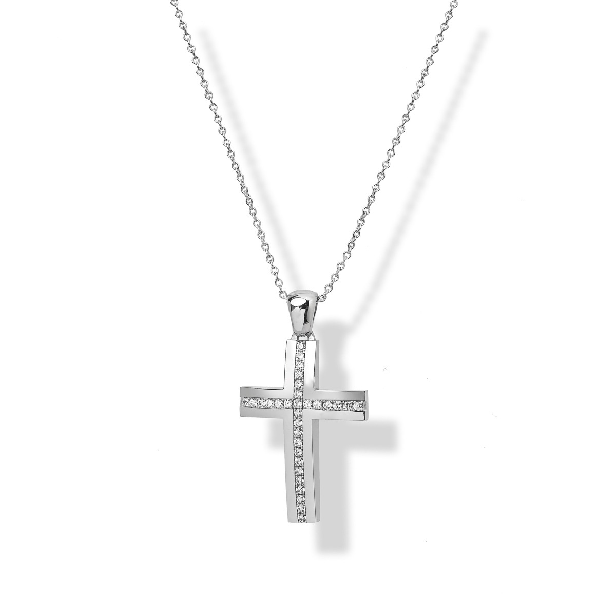 Σταυρός γυναικείος από λευκό χρυσό 14 καρατίων.