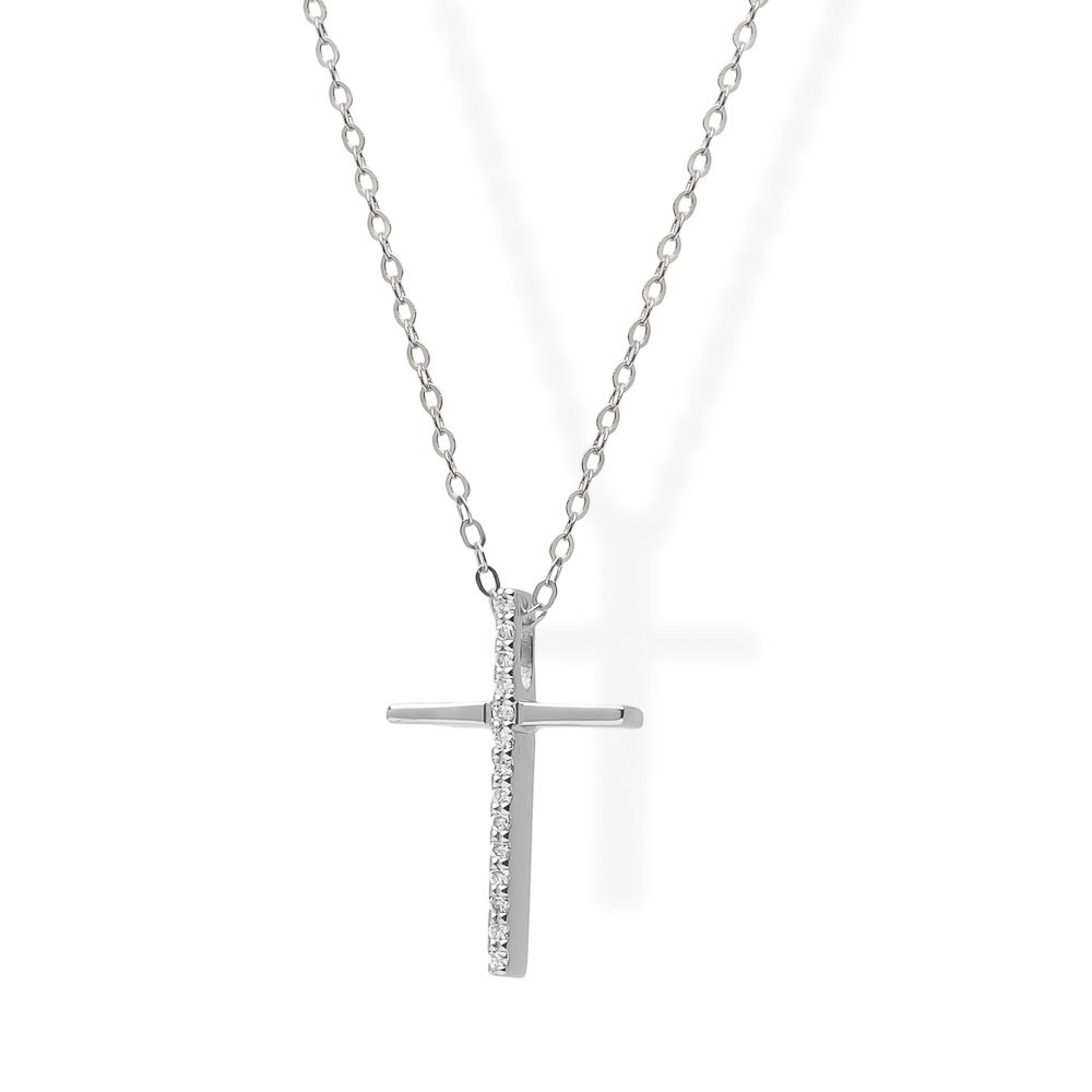Σταυρός γυναικείος από λευκό χρυσό 18 καρατίων με μπριγιάν.
